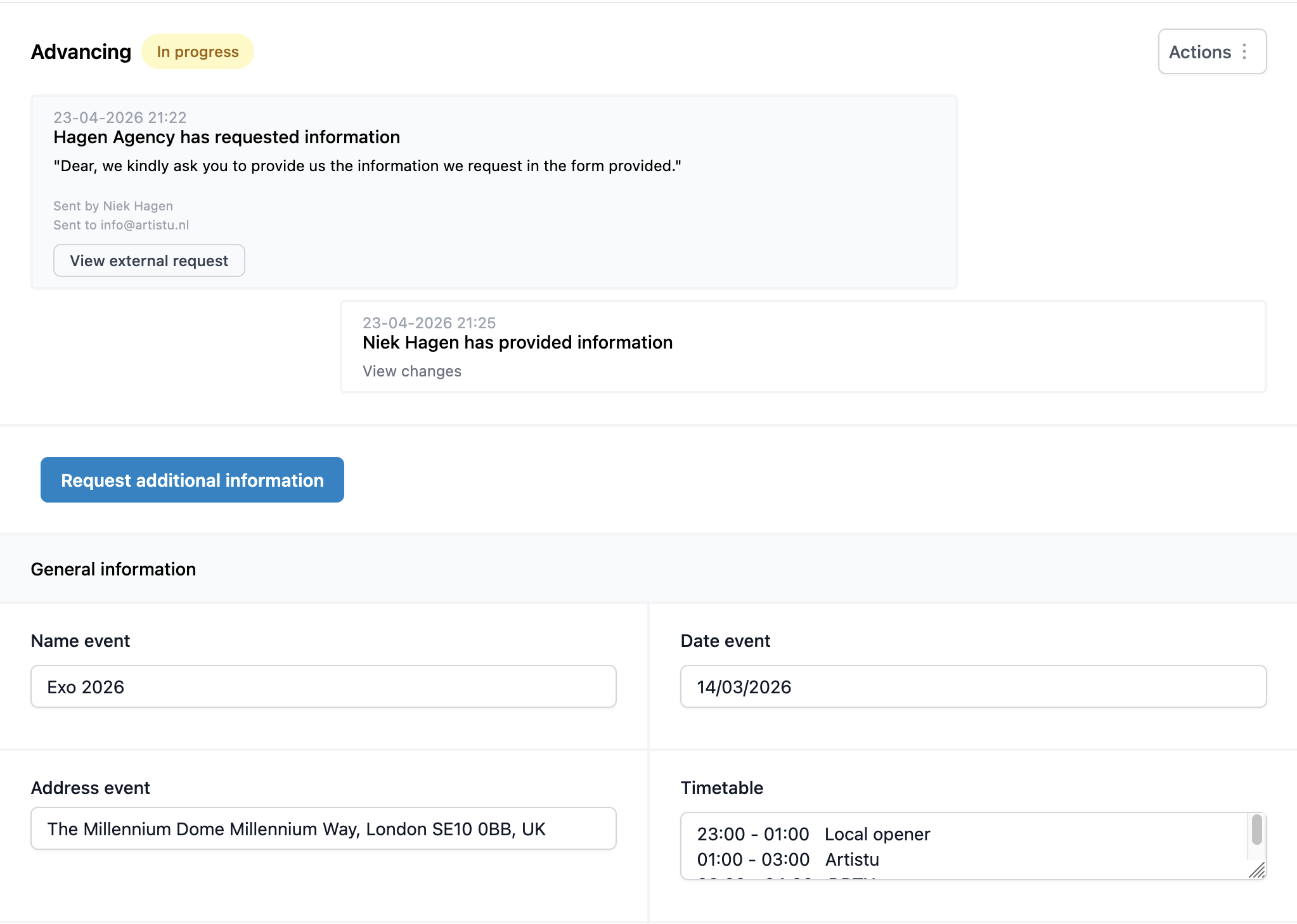Technische Rider, DJ-Booth-Anforderungen und Festivallogistik direkt aus dem System verwalten, das du auch für Buchungen nutzt. Artistu ist weit verbreitet bei Agenturen im Bereich elektronische Musik und im Festivalmarkt.