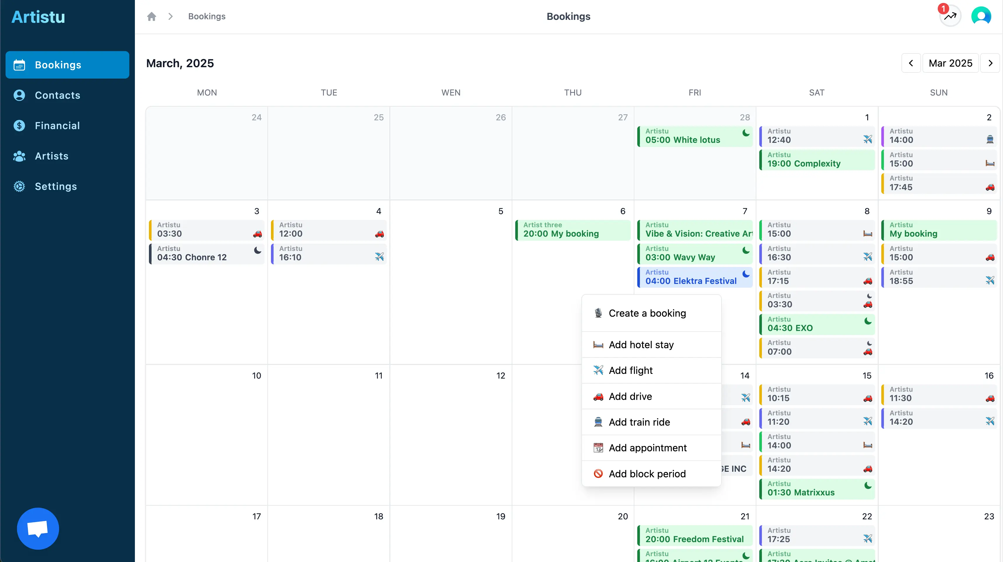Erstellen einer Buchung in Artistu