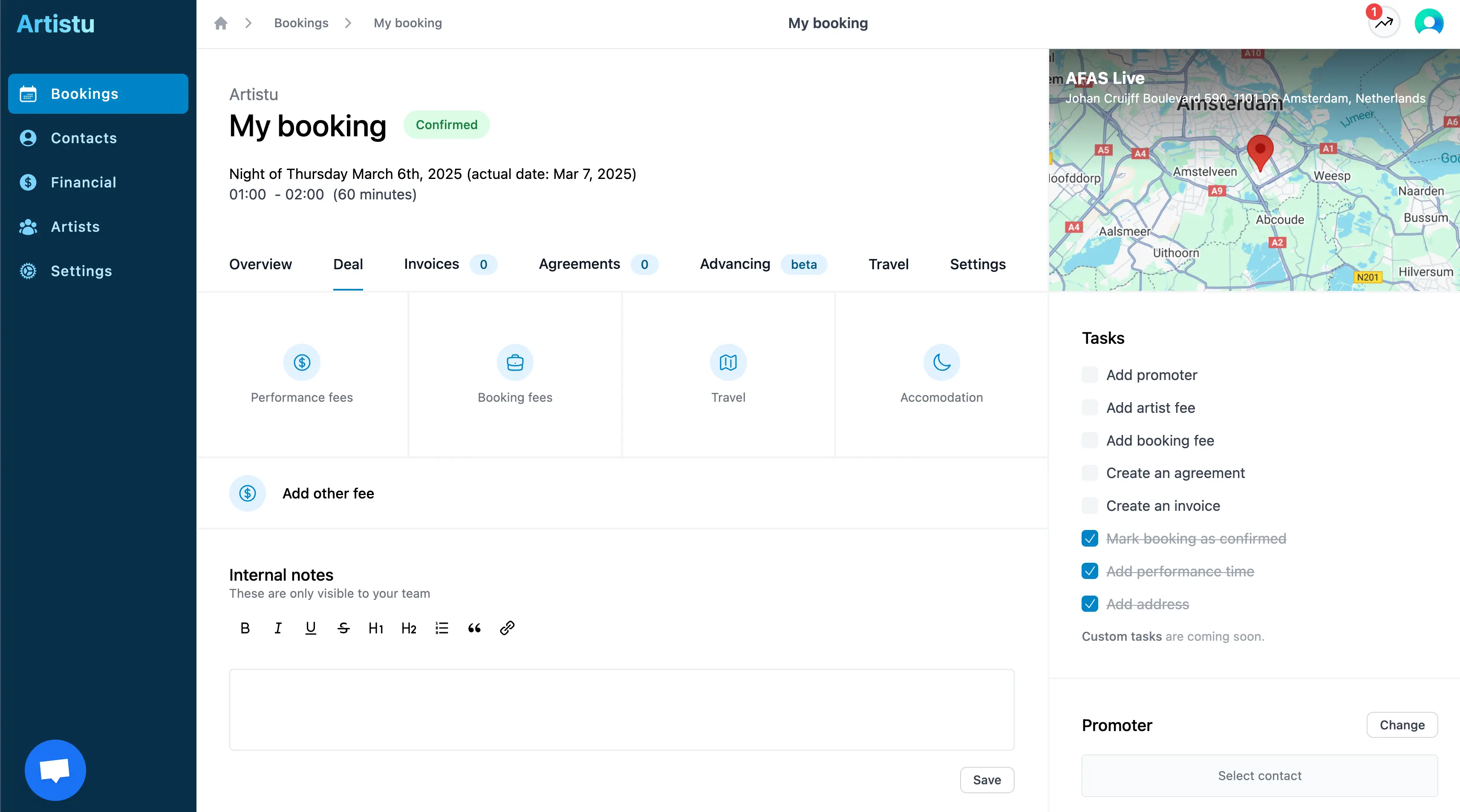 Dieser Leitfaden zeigt Ihnen, wie Sie verschiedene Arten von Deals für Ihre Agenturbuchungen in Artistu verwalten.