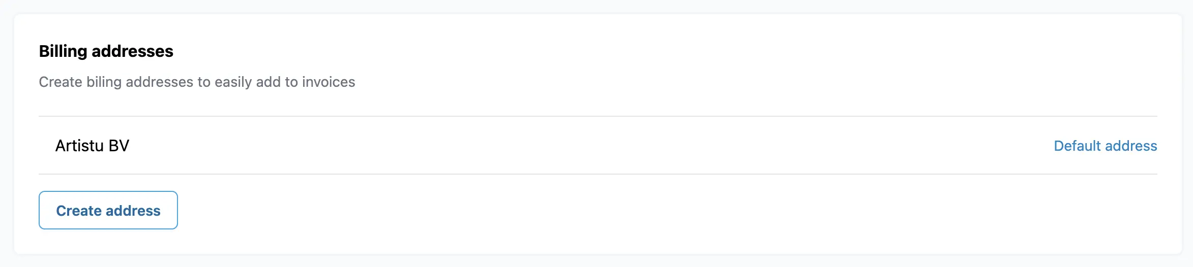 In Artistu fungieren Rechnungsadressen als Ihre unterschiedlichen Unternehmensidentitäten. Sie ermöglichen es Ihnen, mehrere juristische Personen, wie z. B. eine Booking-Agentur und eine Management-Firma, über ein einziges Konto zu verwalten.